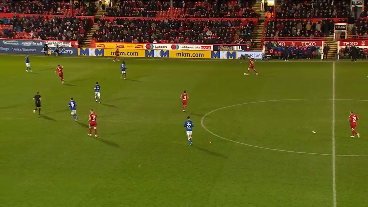 But Saints also played some nice stuff and showed a bravery on the ball that’s to be respected. The Aberdeen pressing is not terrible here, maybe the intensity could be higher but it would have been easy for Saints to drop it back and go long but they play their way out.